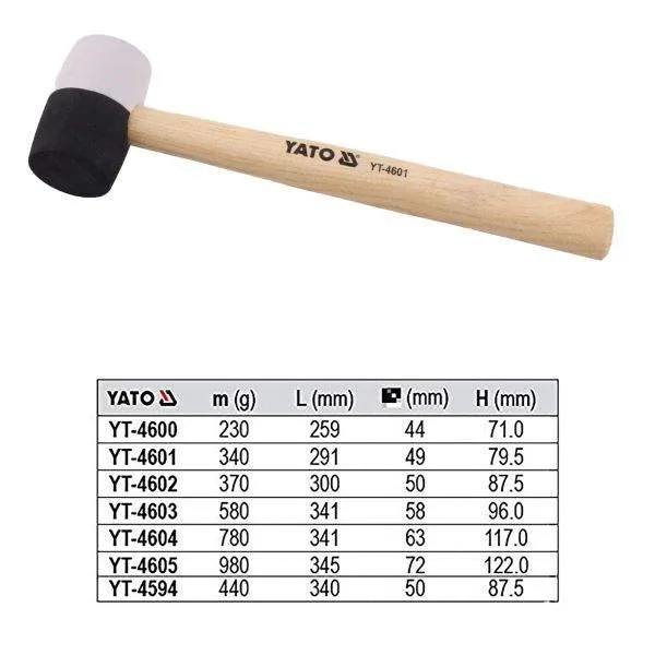 YATO YT-4601 340G RUBBER MALLET – BLACK & WHITE HEAD