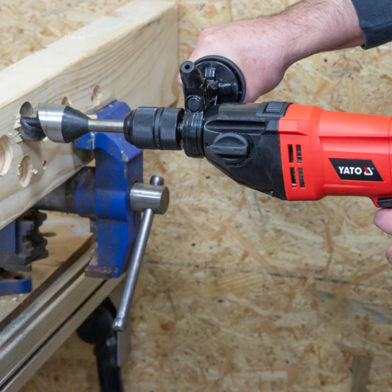 Grd Series Yato Hammer Drill With Two Speeds 850w. Professional Machine For All Repair And Construction Work. A Great Device For People Who Value Convenience And Reliability At Work. More Torque In One Gear Thanks To The Use Of A Two-Speed Gearbox And Ergonomic Design Thanks To The Gear Housing Made Of A New Material. The Increased Efficiency Of The Device Resulting From The Use Of A New Type Of Coil Ensures Comfortable Work.
